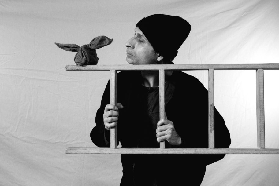 Tres cuerpos en escena habitan un universo de nubes, humo y silencios donde la fuga se gesta. Allí, un trapo cobra vida para convertirse en cómplice del protagonista, una escalera se transforma en mapa y las nubes simbolizan la posibilidad de soñar.