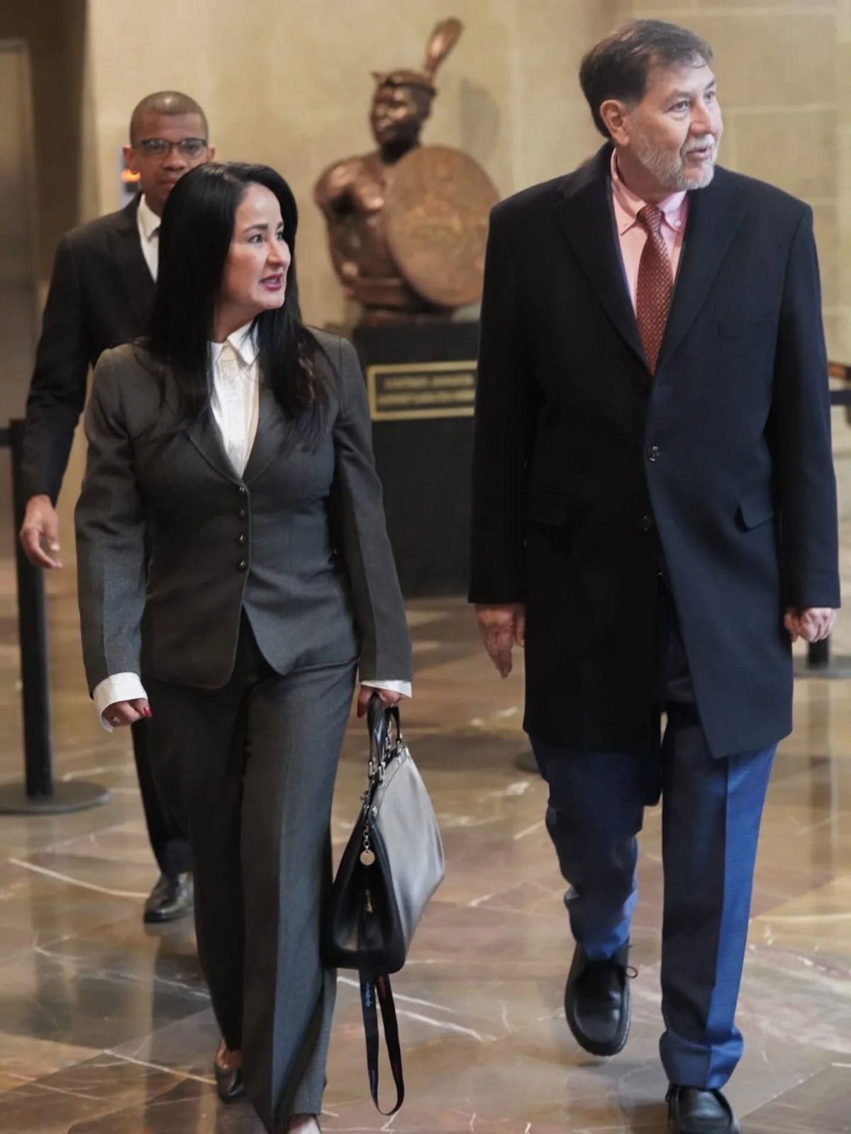 El ex presidente del Senado, el morenista Gerardo Fernández Noroña, con la Embajadora de Venezuela en México, Stella Lugo, en las instalaciones de la Casona de Xicoténcatl, antigua sede del Senado.