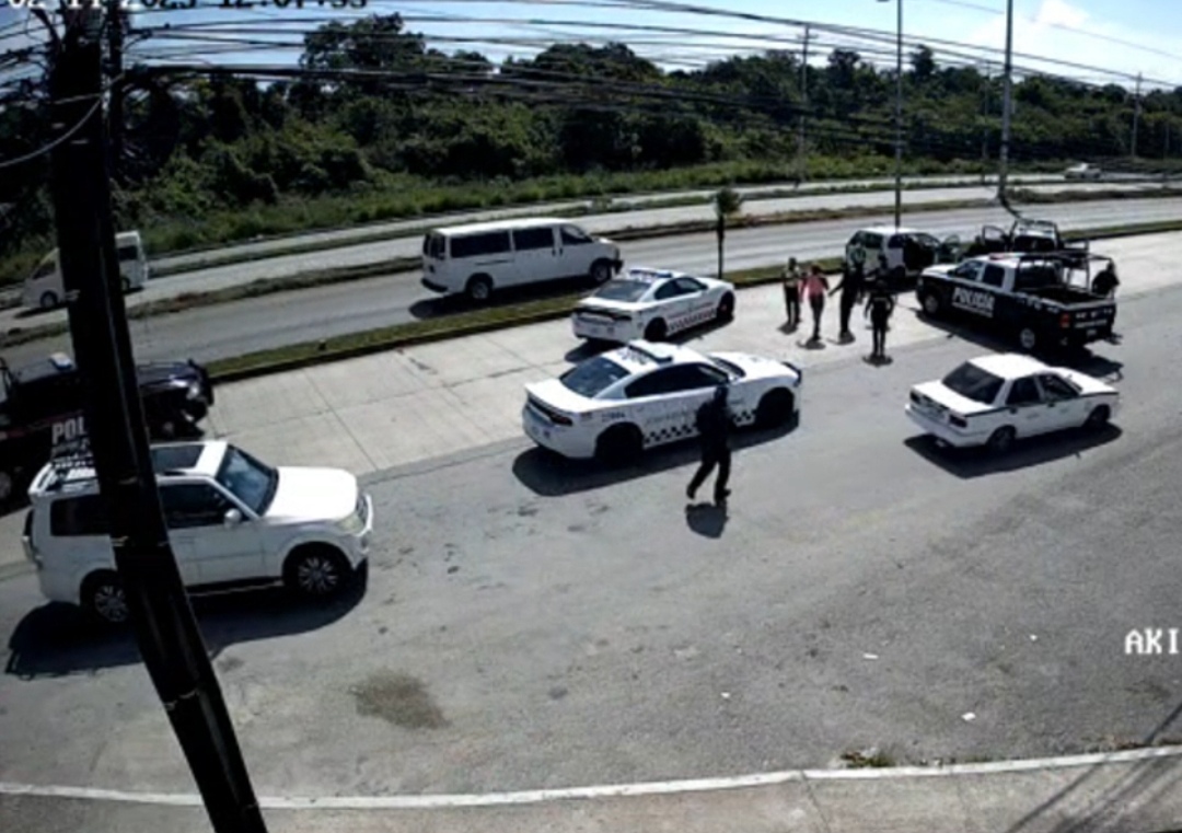 Con esta información, las autoridades emprendieron un operativo en la carretera Cancún – Puerto Morelos, donde lograron interceptar el vehículo y detener a dos sujetos identificados como Julio César “N” y Cristofer “N”.