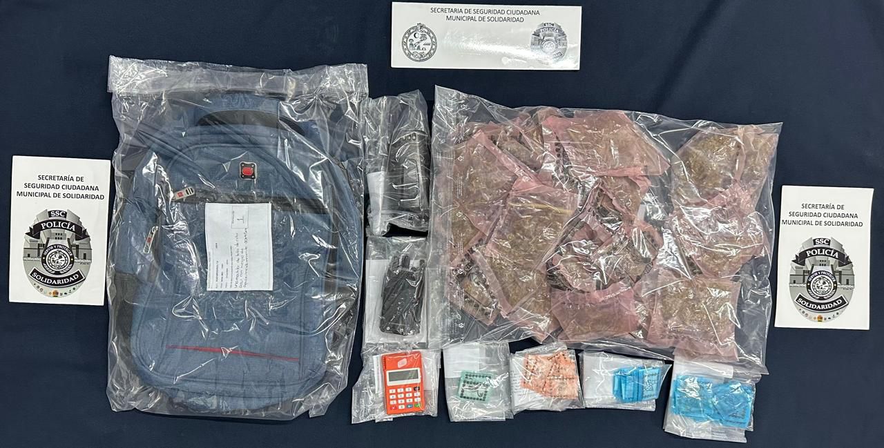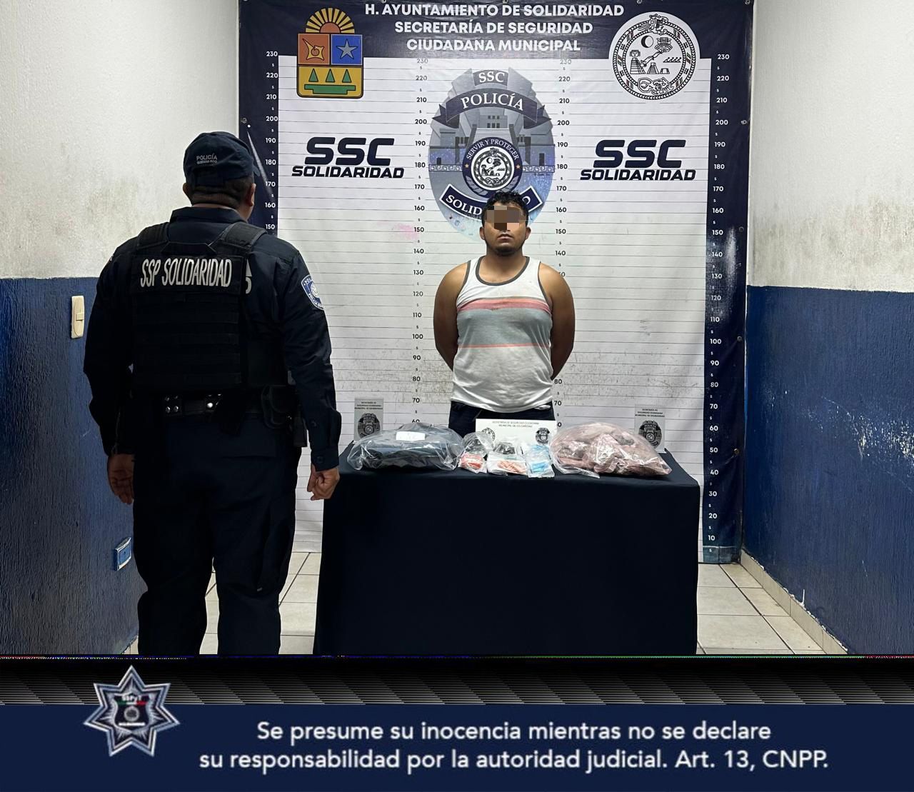 PLAYA DEL CARMEN, 28 de diciembre. – La Secretaría de Seguridad Ciudadana Municipal de Solidaridad detuvo a una persona del sexo masculino y le aseguró 115 envoltorios de posibles narcóticos, dos equipos de radio comunicación, una terminal de pago y un vehículo rotulado como taxi.