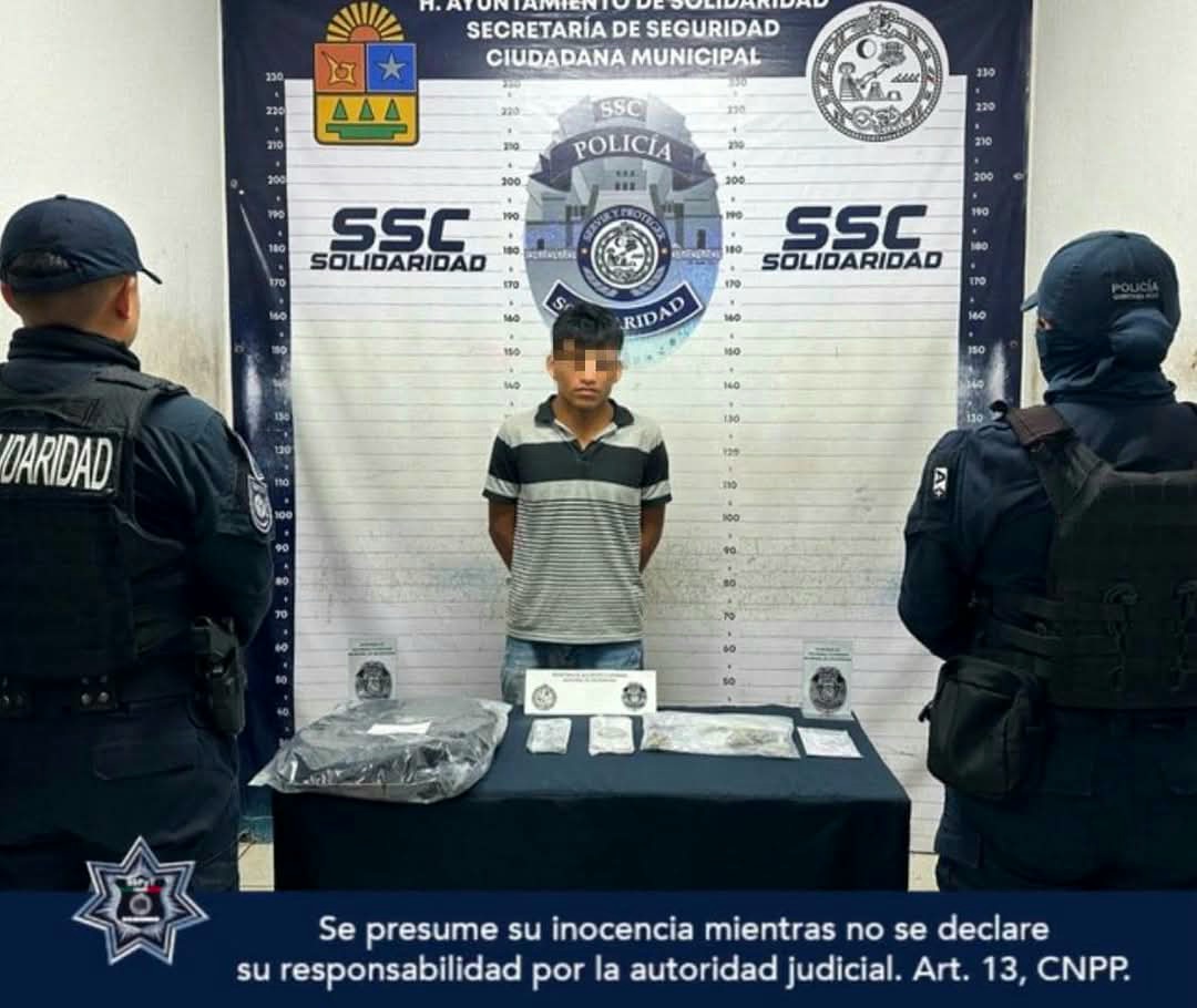 Playa del Carmen, a 16 de febrero.- La Secretaría de Seguridad Ciudadana Municipal (SSCM) de Solidaridad detuvo por probables delitos contra la salud a una persona del sexo masculino, asegurándole 30 dosis de posibles narcóticos, durante una intervención policial en la colonia Luis Donaldo Colosio.