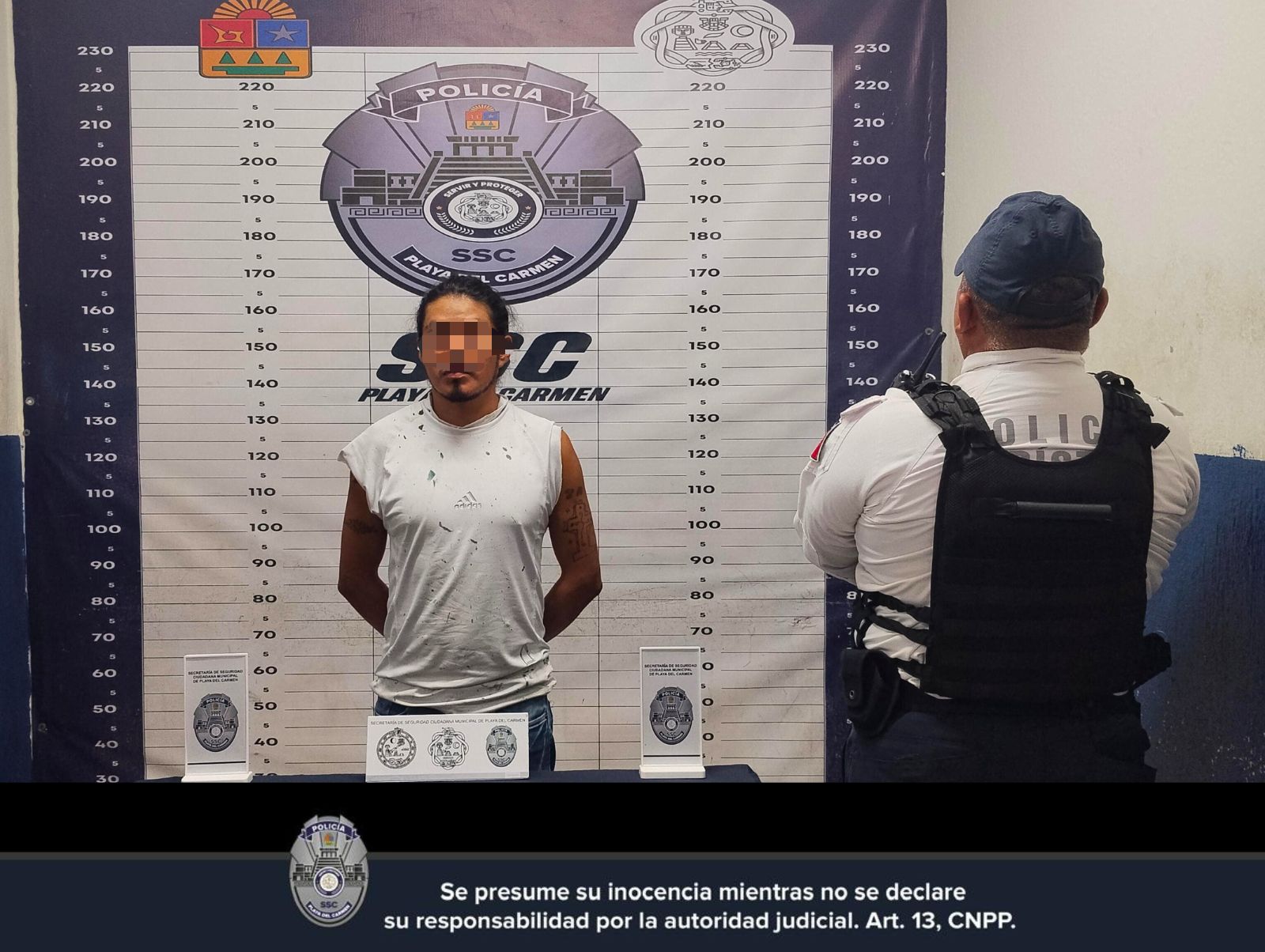 Sujeto fue Asegurado por Alterar el Orden en la Vía Pública en el Centro de Playa del Carmen.
