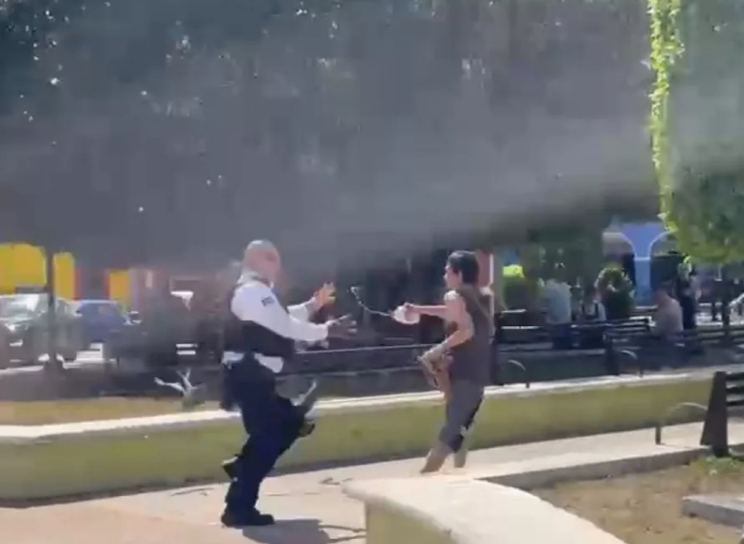 Al momento en que el servidor público intentó sujetarlo, el hombre le arrojó el ácido a la cara y su uniforme; pese a ello no pudo evitar ser derribado y sometido en el suelo cuando llegaron más policías.