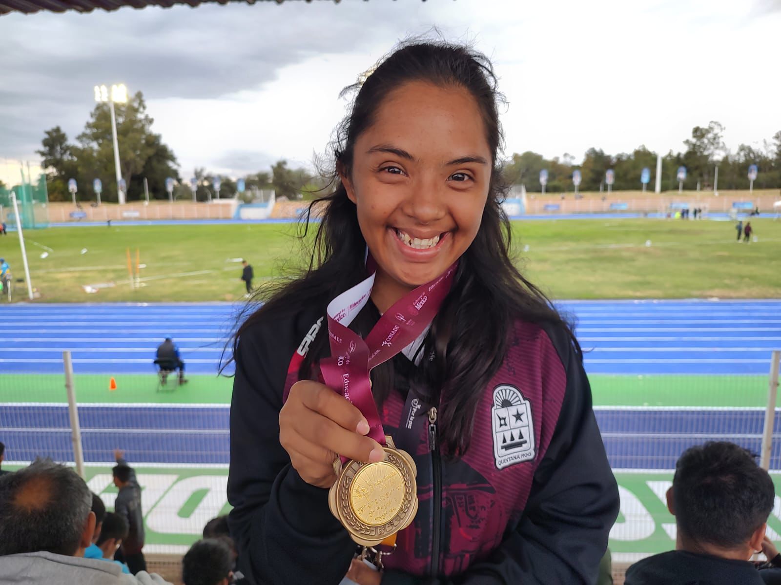 La primera medalla de oro para el equipo quintanarroense llegó por conducto de Estrella Pacheco Ángeles, quien dominó la pista y se quedó con el campeonato nacional dentro de la prueba de los 100 metros planos, en la clasificación T22 de la categoría Juvenil Superior.