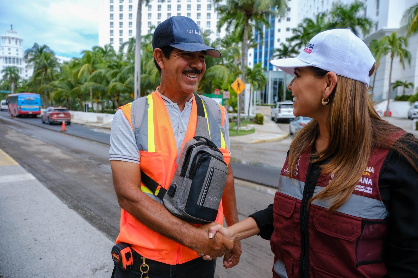 Supervisa Mara Lezama Obras de Repavimentación en el Bulevar Kukulcán, en la Zona Hotelera de Cancún