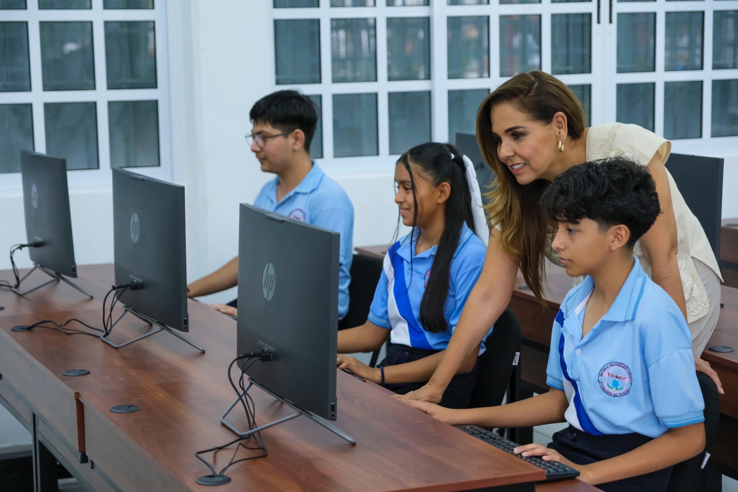 Esta mañana durante una visita a la escuela secundaria general “8 de Marzo”, del fraccionamiento Cielo Nuevo de esta ciudad, la gobernadora Mara Lezama Espinosa supervisó y constató los avances de un moderno taller de cómputo, la creación de tres nuevas aulas y la mejora de las áreas exteriores para que 879 alumnas y alumnos los puedan ocupar a la brevedad y puedan desarrollar, a plenitud, todas sus actividades educativas.