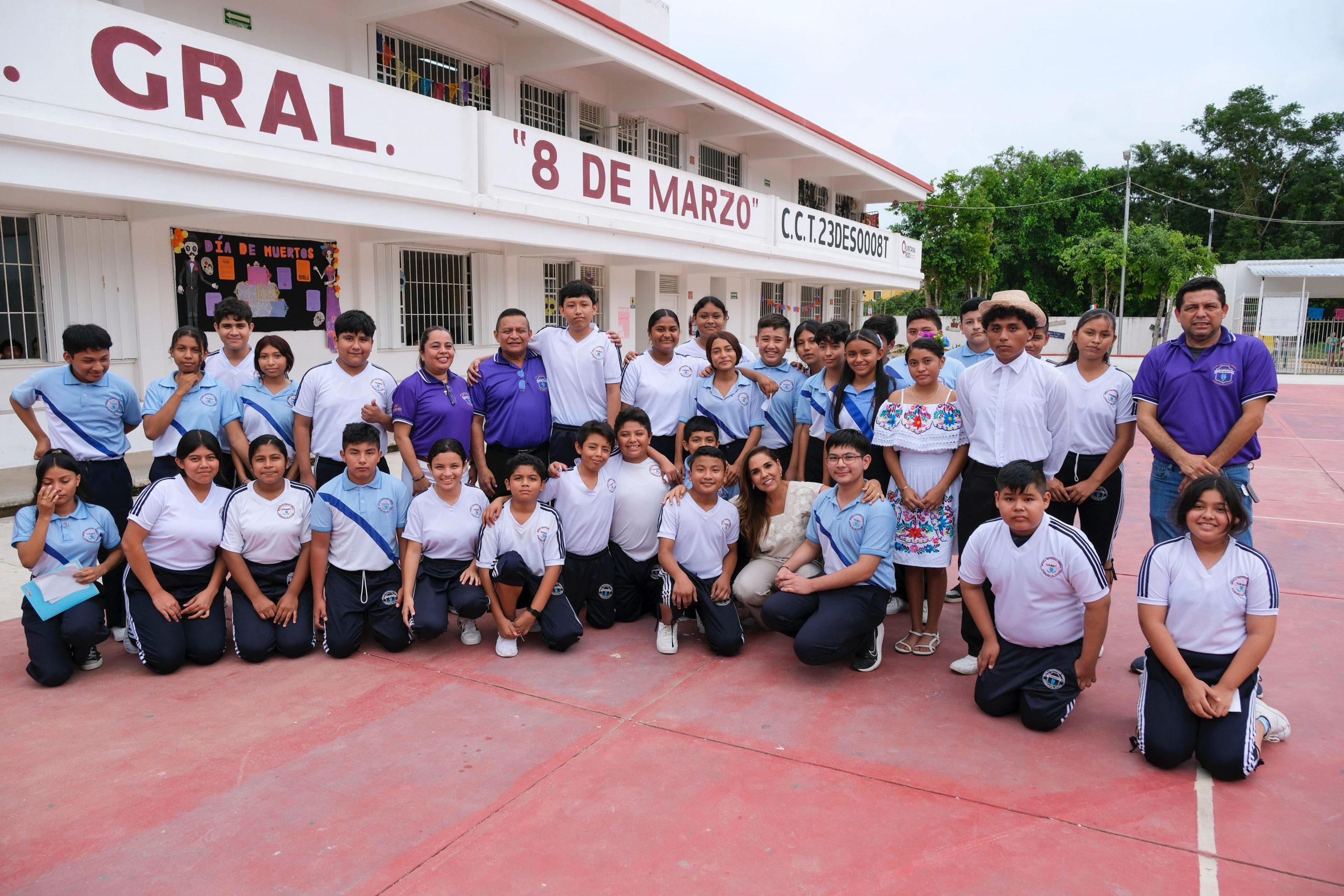 Al conversar con las y los estudiantes, la Gobernadora destacó que estas son acciones concretas que, en el marco del Nuevo Acuerdo por el Bienestar y Desarrollo de Quintana Roo y en la Nueva Era de la Transformación, buscan que el estudiantado tenga las condiciones adecuadas para un aprendizaje de calidad.