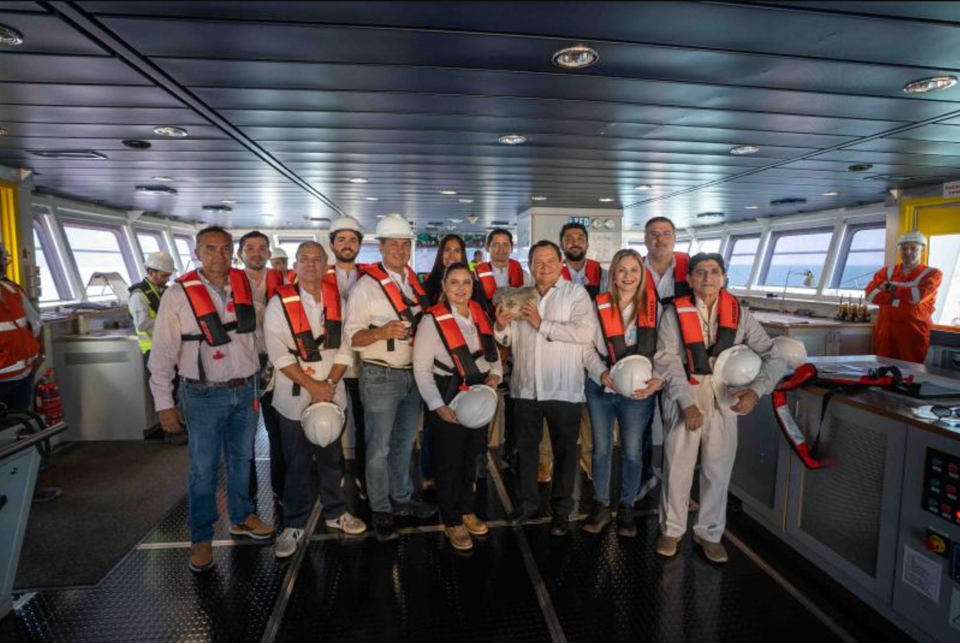 El mandatario recorrió la draga Fernando de Magallanes junto con representantes empresariales para constatar el progreso de esta obra estratégica del Gobierno del Renacimiento Maya.