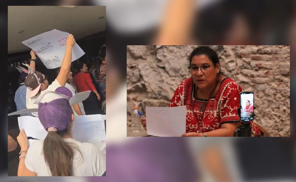 A través de videos difundidos en redes sociales, se observa a un grupo de personas con orejas de burro mientras le gritaban a Batres “fuera, fuera, fuera” al ritmo de tamboras.