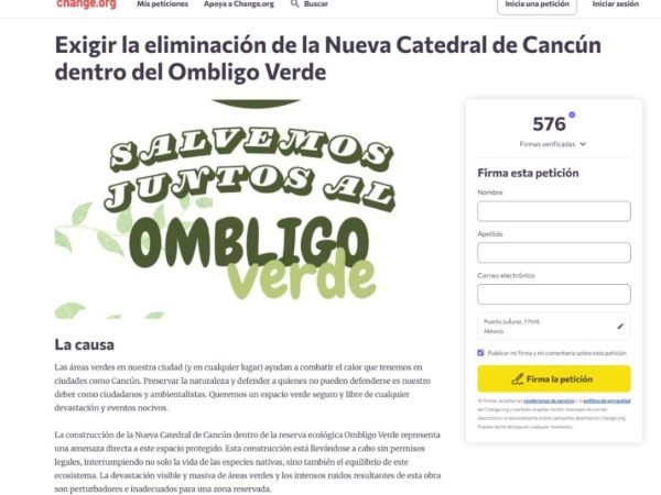 Alcanza 576 Firmas la Petición en Change.org Contra Construcción de Catedral en el Ombligo Verde de Cancún