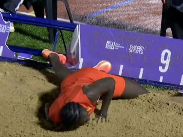Un Atleta se Resbala en la Pista Mojada y Termina Último Lugar en Salto de Longitud de Los Juegos Panamericanos