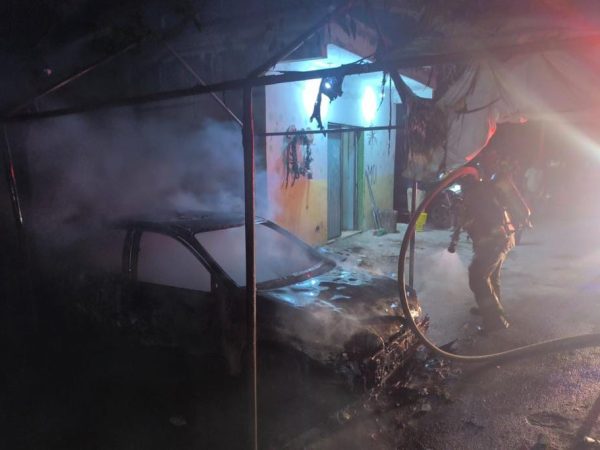 Auto en Llamas Moviliza a Bomberos en la Colonia Mártires Antorchistas de Chetumal