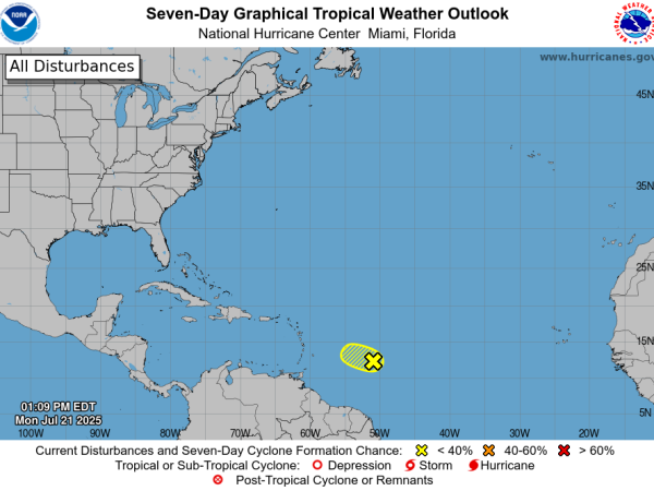 Zona de Baja Presión en el Atlántico Mantiene Pocas Probabilidades de Desarrollo Ciclónico