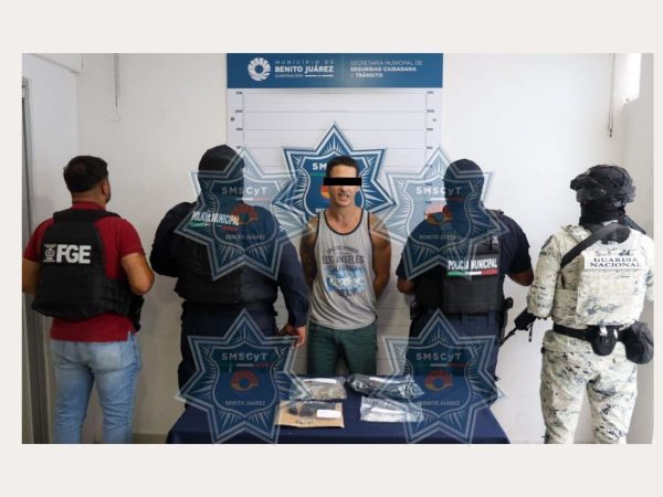 Capturan a Hombre en Cancún con Droga y Arma de Fuego