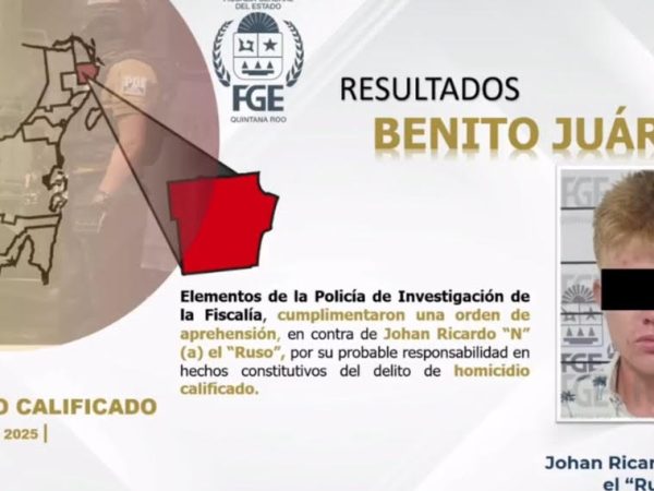 1 Sep. 2025Redacción / CAMBIO 22 Cancún, 2 de septiembre.– Elementos de la Secretaría de Seguridad Ciudadana detuvieron a Johan Ricardo, alias “El Ruso”, en cumplimiento…