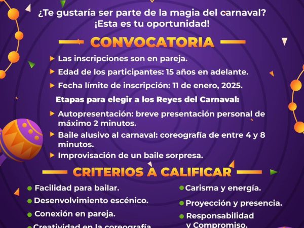 18 Ene. 2025Autoridades municipales, encabezadas por la alcaldesa Estefanía Mercado, dan a conocer que el evento se llevará a cabo del 26 de febrero al 4…