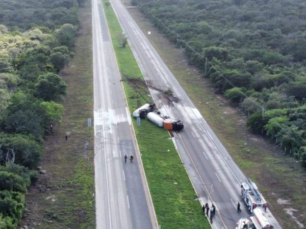 Caos Vial en la Carretera Mérida-Campeche por Volcadura de Pipa de Gas
