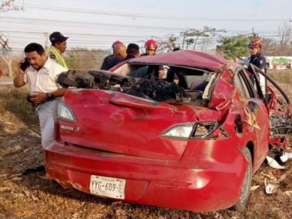 Conductora Queda Prensada tras Volcar su Vehículo en el Tramo Carretero Playa del Carmen-Tulum