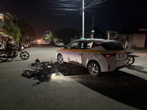 Choque Entre Auto Particular y Taxi Deja Daños Materiales en la Colonia Tumben Cuxtal