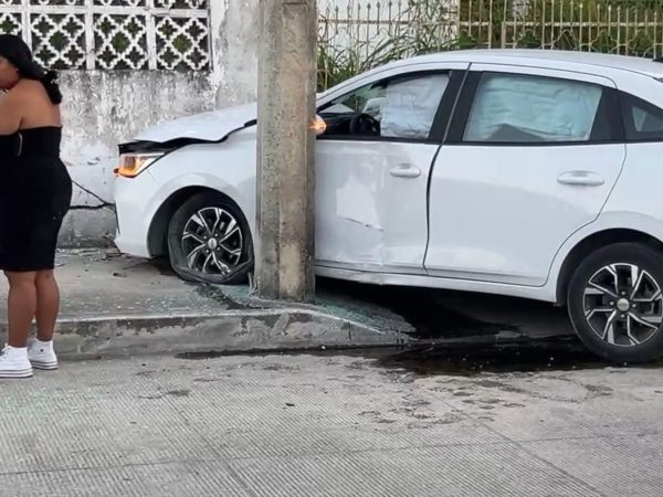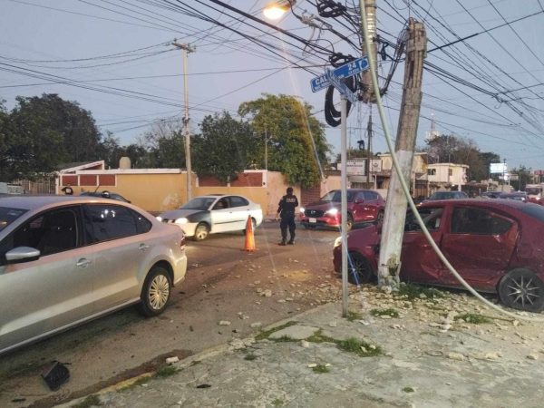 Un Poste de la CFE Partido en Dos, Tres Lesionados y Dos Autos Involucrados en un Hecho Vial en Mérida
