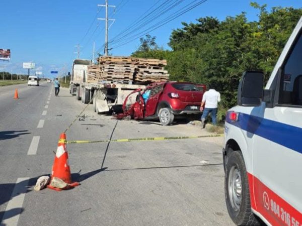 1 Mar. 2025Erik González/CAMBIO 22 Playa del Carmen, a 1 de marzo.- Un conductor perdió la vida esta tarde, luego de estrellar su camioneta contra un tráiler…