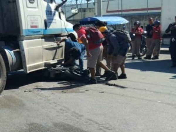 Poco Faltó para que un Motociclista Fuera Aplastado por un Tráiler en Umán