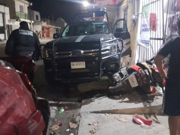 Unidad Policiaca de Progreso Choca Contra Moto y Auto en el Puerto