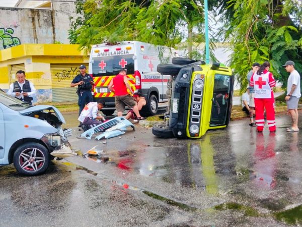 Camioneta Suzuki Termina Volcada tras Accidente en el Centro de Chetumal