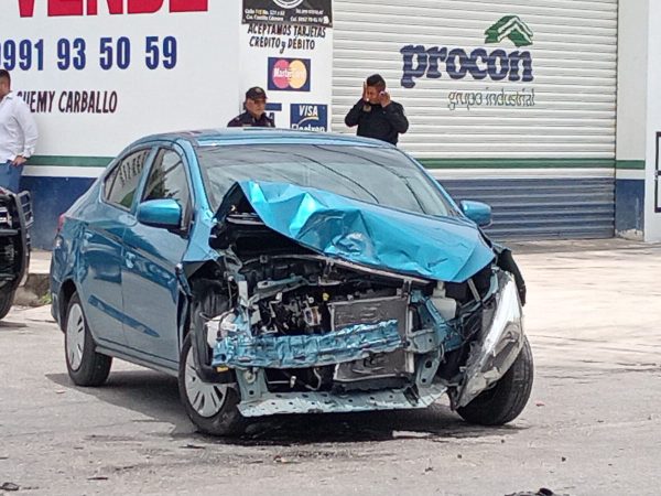 Choque Entre Dos Vehículos Compactos Genera Caos Vial en Céntrico Cruce de Chetumal