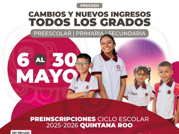 Comienza en Quintana Roo Nuevo Periodo de Preinscripción de Ingreso a Preescolar, Primaria o Secundaria Públicas y Cambio de Escuela/Turno