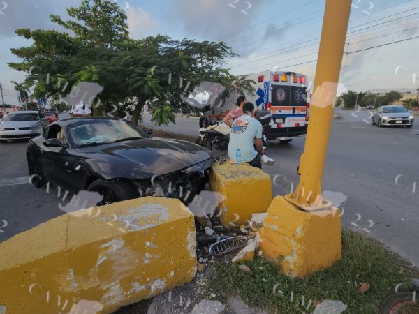 Conductor Distraído Impacta su Vehículo Contra el Camellón en Cancún