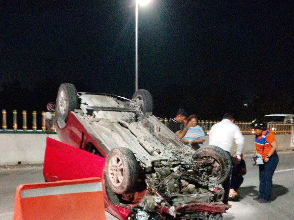 Volcadura en Carretera de Subteniente López; Conductor Manejaba en Estado Inconveniente