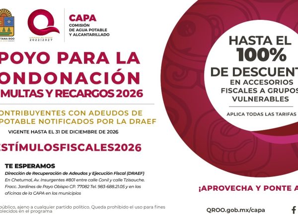 Durante todo 2024, el gobierno de Quintana Roo, a través de CAPA, continuará con el Apoyo para Contribuyentes con Adeudos en DRAEF