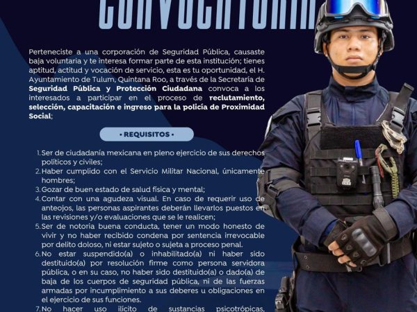 Convoca Seguridad Pública de Tulum a Exelementos para Reincorporarse como Policías de Proximidad