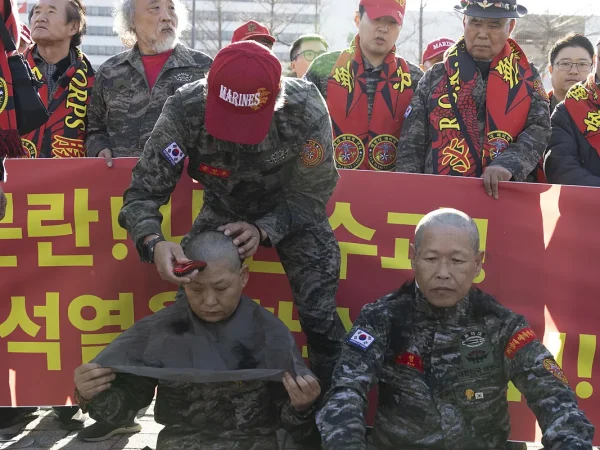 Veteranos del Ejército se Raparon en Protesta Contra el Presidente de Corea del Sur