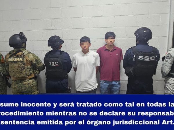 7 Dic. 2025Redacción/CAMBIO22 Cozumel, 7 de diciembre.- Dos hombres identificados como Christian Enrique “N” y Manuel Vladimir “N” fueron detenidos en el municipio de Cozumel…
