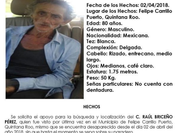 Activan Ficha de Búsqueda por Desaparición de Raúl Briceño Pérez, Visto por Última vez en 2018 en Felipe Carrillo Puerto