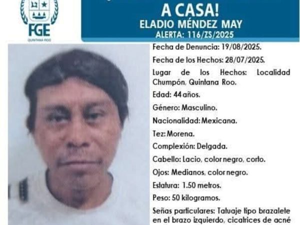 4 Jul. 2025La FGE Quintana Roo reitera que cualquier información, por mínima que parezca, puede ser valiosa para dar con el paradero de Raúl Briceño Pérez.…