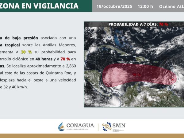 19 Oct. 2025El fenómeno asociado a una onda tropical sobre las Antillas Menores podría alcanzar un 70% de probabilidad en siete días, según el SMN y…