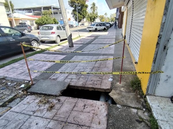 Desfonde en Acera de la Avenida Independencia Pone en Riesgo a Peatones en Chetumal