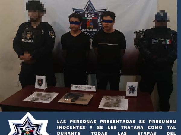 Detienen a Dos jóvenes en Tulum con Presunta Droga y Arma de Fabricación Casera