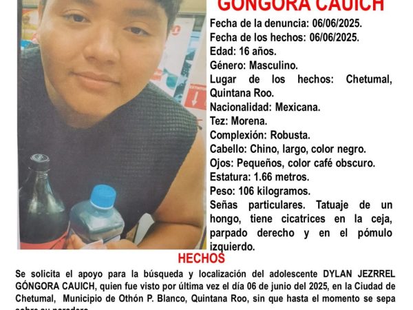7 Jun. 2025El joven Dylan Jezrrel desapareció el 6 de junio en Chetumal; la Fiscalía activó una Alerta Amber y solicita la colaboración de la ciudadanía…