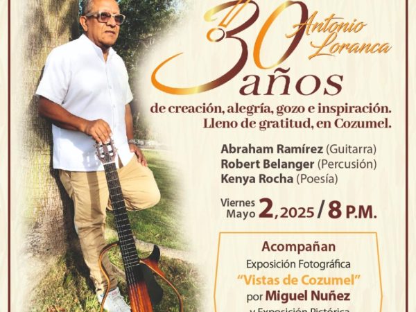 24 Abr. 2025También se inaugurará las exposiciones de fotografía “Vistas de Cozumel”, de Miguel Núñez y de pintura “A través de mis Ojos” de Arturo Castañeda…