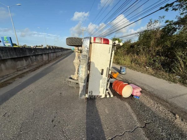 Camioneta Cae del Puente Elevado de Puerto Aventuras, el Chofer Huye del Lugar