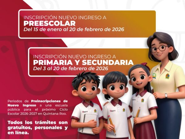 15 Ene. 2026Hasta el 20 de febrero, madres, padres y tutores pueden hacer la inscripción en https://padresenlinea.seq.gob.mx Redacción / CAMBIO 22 Chetumal.- Del 15 de…