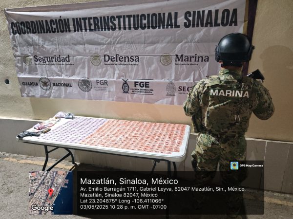 Marina, en Conjunto con Grupo Interinstitucional Aseguró un Maletín con Presunta Droga, Numerario, Un Arma y Municiones en Mazatlán, Sinaloa