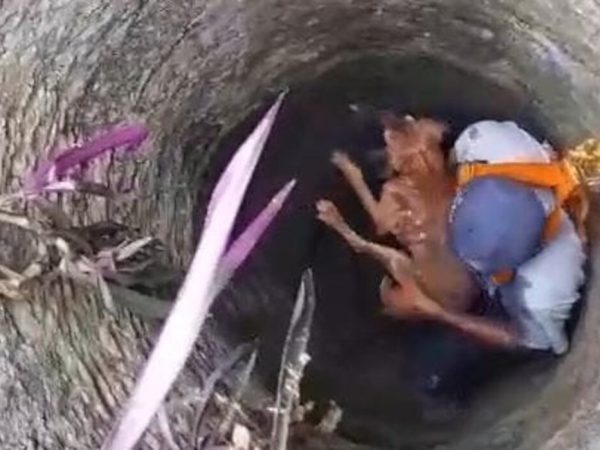 Rescatan a una Mascota que Cayó en un Pozo en Motul