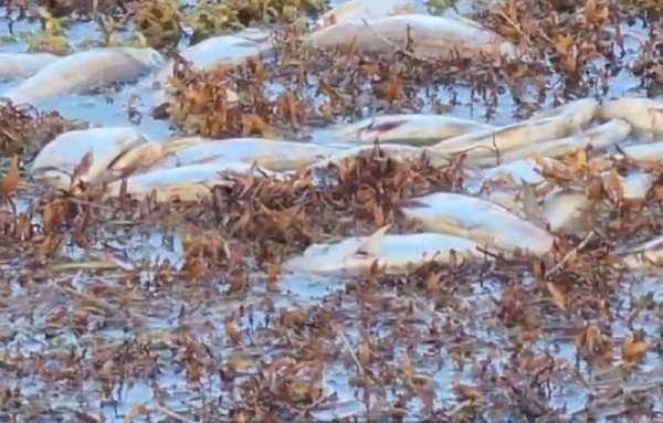 Captan Muerte Masiva de Peces a Causa del Sargazo en la Costa Maya