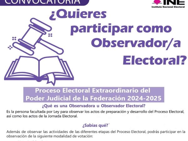 INE Abre Convocatoria para Observadores del Proceso Electoral del Poder Judicial de la Federación
