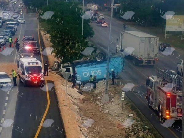 Se Registra Aparatosa Volcadura Este Miércoles Sobre el Periférico de Mérida